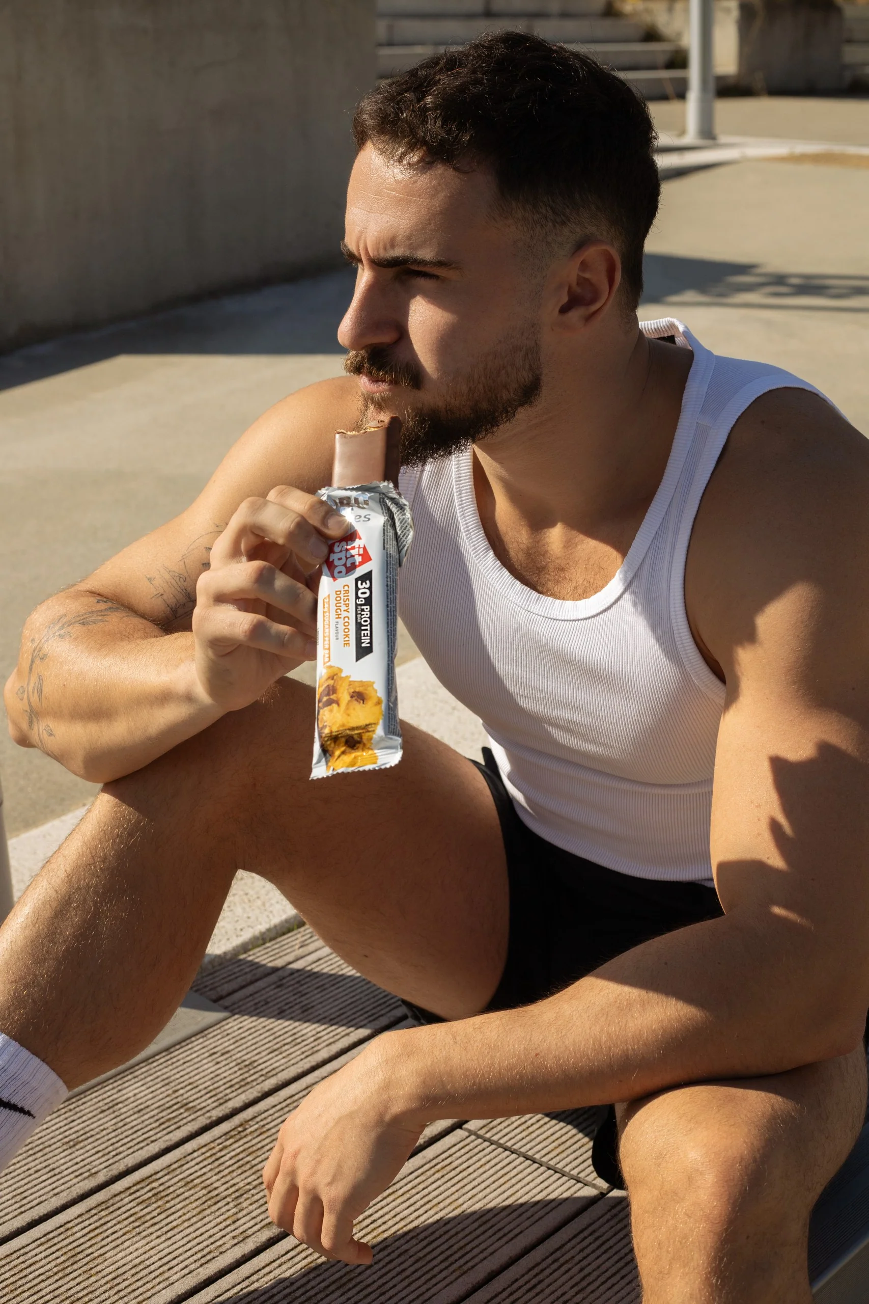 Dėl 85 g formato šis batonėlis idealiai tinka po treniruotės arba kaip sotus užkandis.