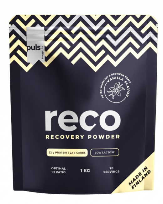 „PULS RECO“ yra klasikinis atsistatymo (recovery) formulės produktas, kurio pagrindą sudaro idealus 1:1 baltymų ir angliavandenių santykis. Kiekviena porcija suteikia 22 g aukštos kokybės išrūgų baltymų raumenų auginimui ir 22 g greitai pasisavinamų angliavandenių energijos (glikogeno) atsargoms papildyti. Tai paprastas, skanus ir efektyvus būdas pagreitinti regeneraciją po bet kokio fizinio krūvio.