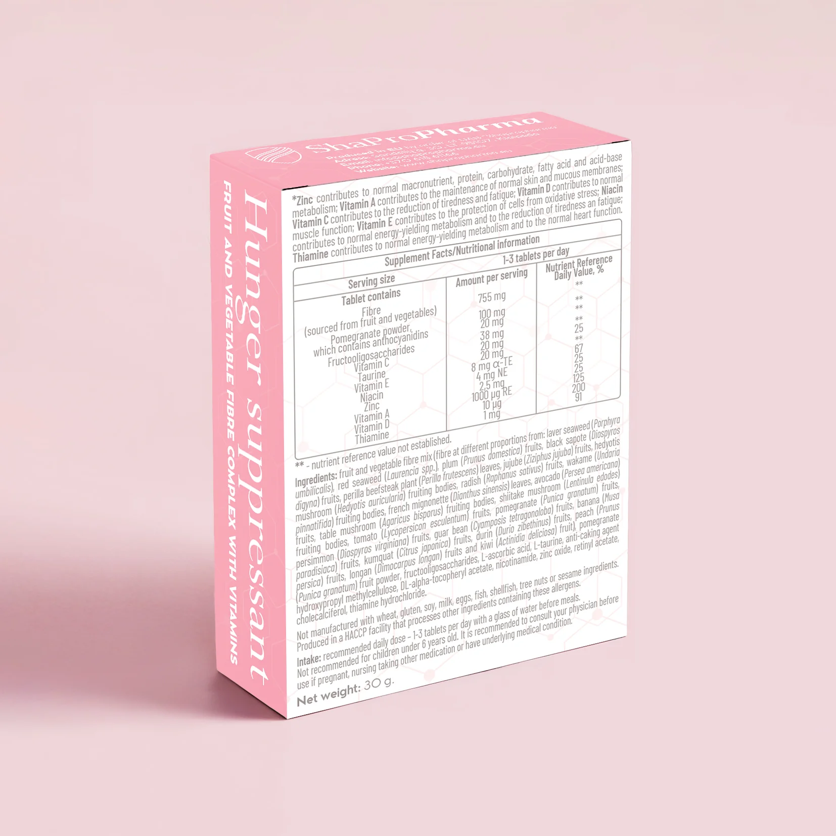 Hunger Suppressant – Natūralus Alkio Kontrolės Kompleksas | Shapro Pharma (30 tablečių)