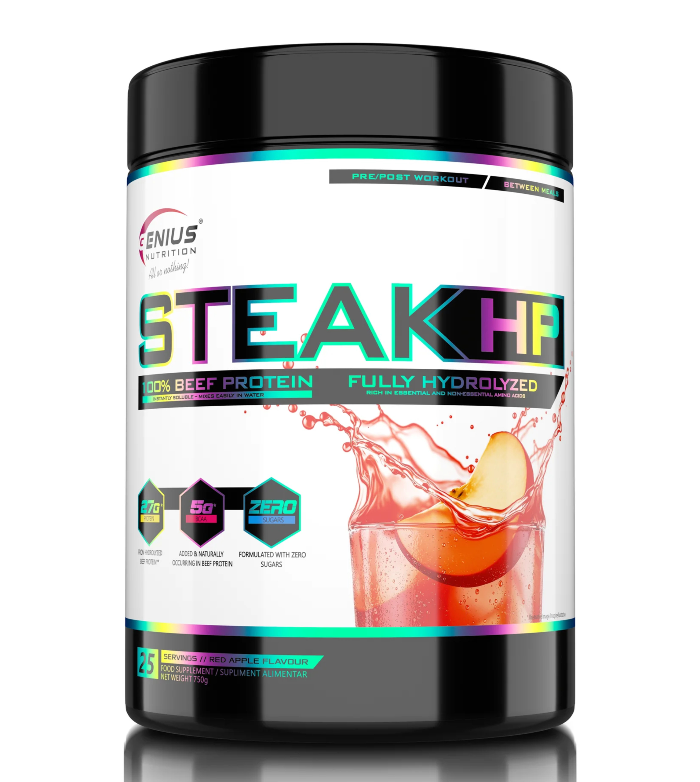 Genius Nutrition® Steak HP delivers all the muscle-building power of beef with higher amino acid levels than other protein sources used in supplements, including whey, soy, milk, and egg.